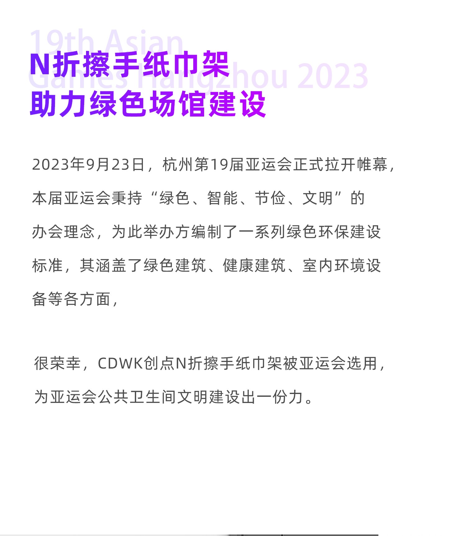 綠色亞運(yùn) | CDWK創(chuàng)點(diǎn)亞運(yùn)會選用紙巾架,助力綠色場館建設(shè)!